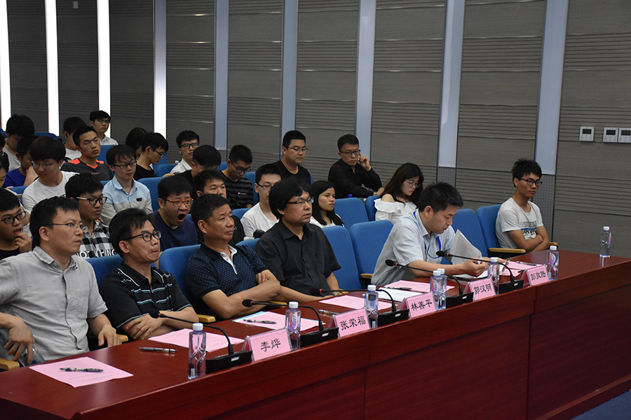 由福建順昌虹潤精密儀器有限公司虹潤創新基金資助,上海理工大學光電學院與計算機工程學院承辦的第九屆“秋炫滬江•光電杯”研究生科技創新設計大賽決賽于 2019年7月3日下午在光電報告廳如期舉行。虹潤公司董事長、上海理工大學杰出校友善平先生、光電學院郭漢明教授、張榮福教授、彭敦陸教授、李燁老師、黨委書記陳海瑾、常務副院長張學典、黨委副書記曹英、副院長鄭繼紅、校友處副處長王蕊老師出席活動。